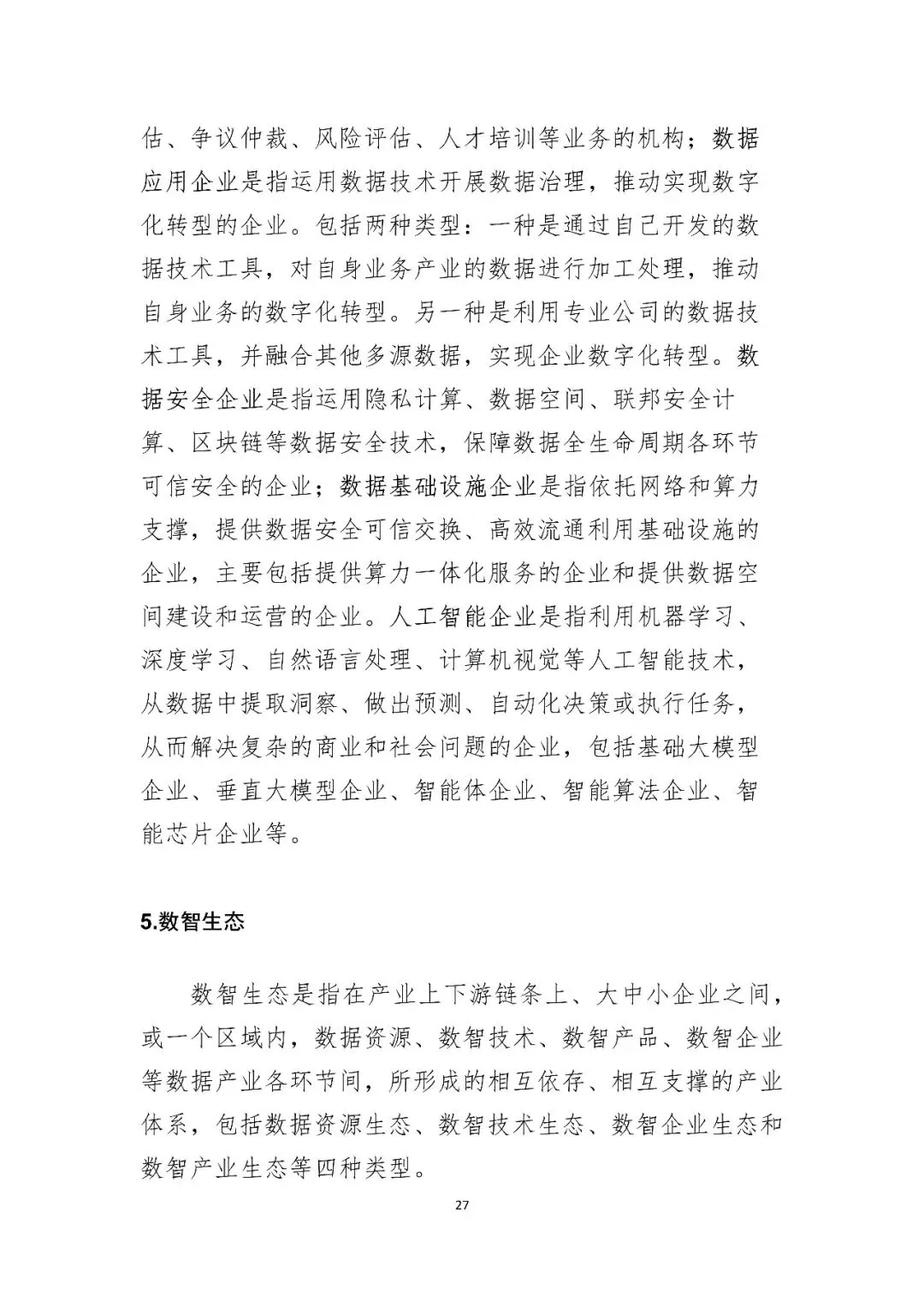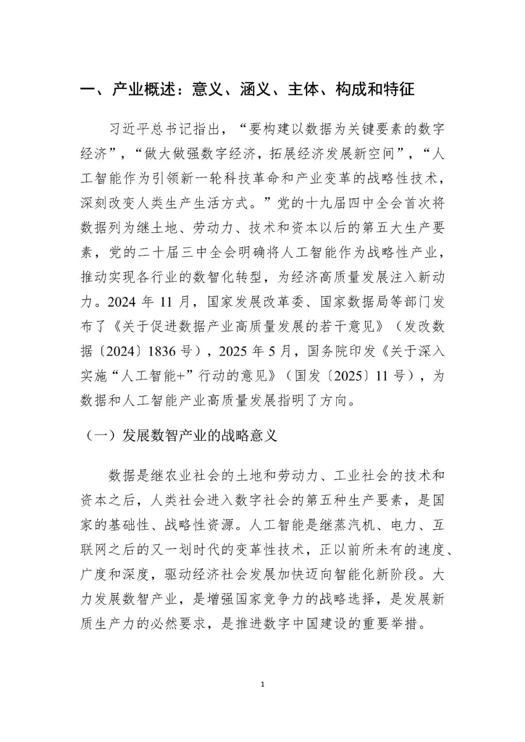 首次定义“数智产业”:明确提出数智产业是“数据人工智能化”与“人工智能数据化”双向融合的产物,涵盖数据资源、技术、产品、企业、生态等五大要素。