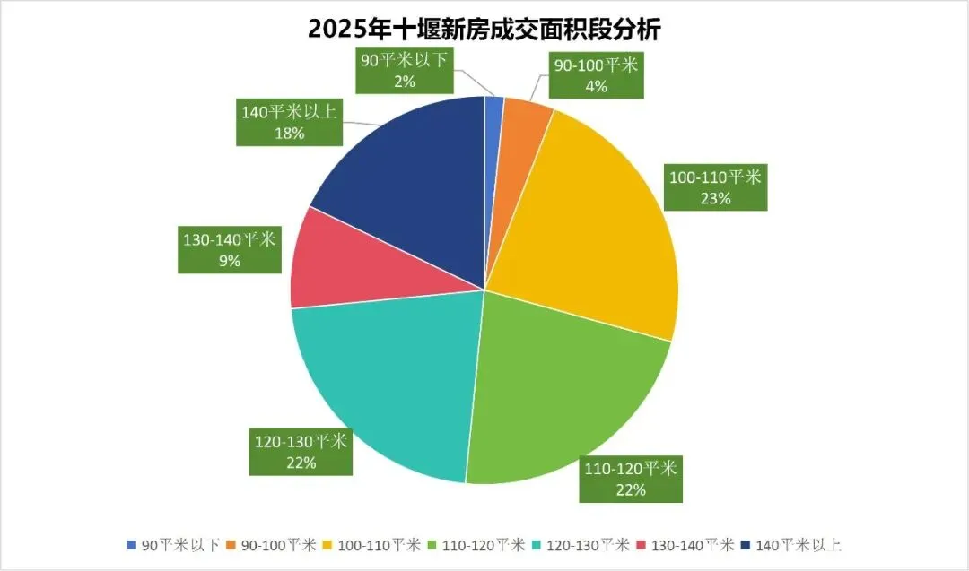 100-110㎡、110-120㎡及120-130㎡三个面积段合计占比近七成,显示功能完整、尺度适中的三房产品已成为新房市场的绝对主力。