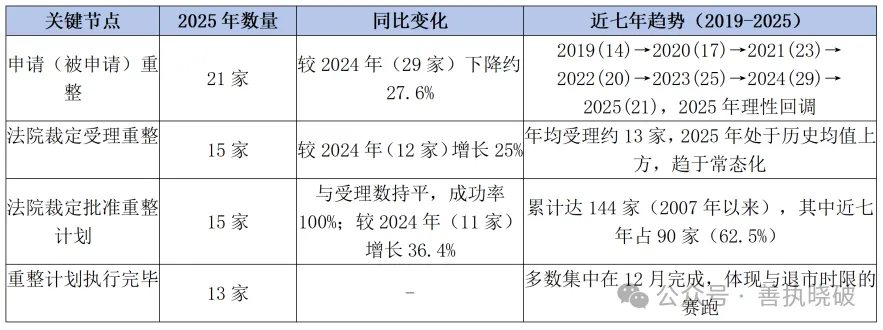 根据公开的信息统计,2025年上市公司破产重整市场呈现“申请理性、受理稳定、批准高效”的格局。