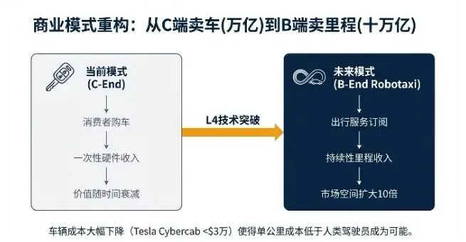 2026年,智驾算法正式从Rule-based(规则驱动)彻底进化为Data-driven(数据驱动)。技术共识: “端到端+AI大模型”VLA(视觉-语言-行动)模型与世界模型(World Models)。算力竞赛: 随着特斯拉FSD V12、华为ADS 3.0/4.0以及小米智驾的快速迭代,智驾已具备了理解物理规律和预测复杂环境的能力。芯片突破: 蔚来NX9031等国产芯片通过1000+ TOPS的暴力输出,让车端能够实时运行更复杂的Transformer架构,大幅降低了智驾在城市场景中的接管率。小米等新玩家在短短1年内走完传统车企5年的路,证明了“科技公司造车”在算法迭代上的降维打击。【核心看点五】Robotaxi商业化元年:从C端产品到B端运营的范式转移