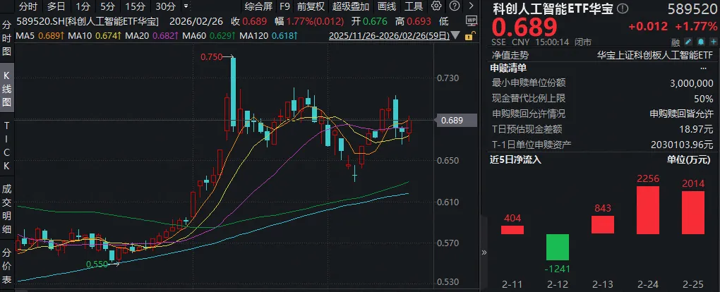 早有资金提前进场埋伏!上交所数据显示,科创人工智能ETF(589520)此前3日连续吸金,合计金额5113万元。