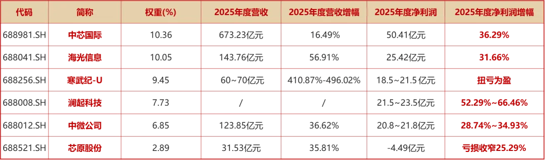 图:上证科创板芯片指数部分权重股2025年度业绩