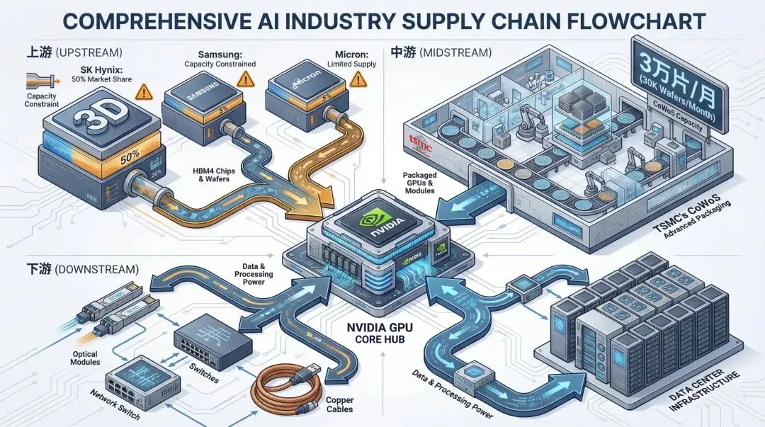 ⚠️ 关键瓶颈:由于 HBM4 的封装工艺复杂,产能扩张周期长达 18-24 个月,这将成为英伟达出货量的主要瓶颈。