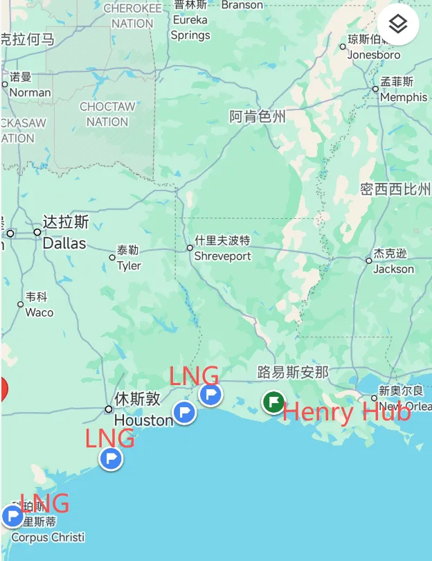 美国有7大LNG出口港,而美国天然气期货定价是在亨利港(Henry Hub)。