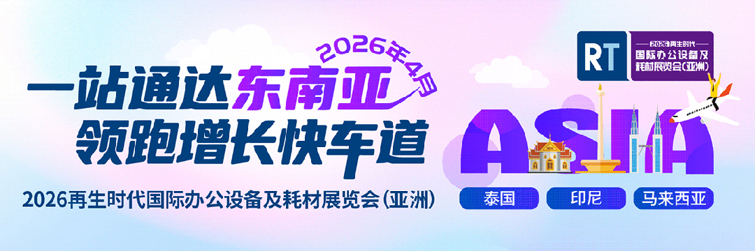 4月9日至16日,2026再生时代国际办公设备及耗材展览会(亚洲)将于泰国、马来西亚、印度尼西亚举办。