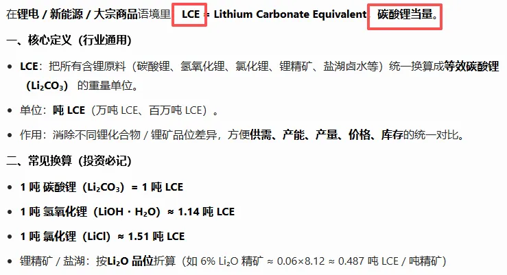LCE(吨) = 氢氧化锂用量(吨) × 1.54