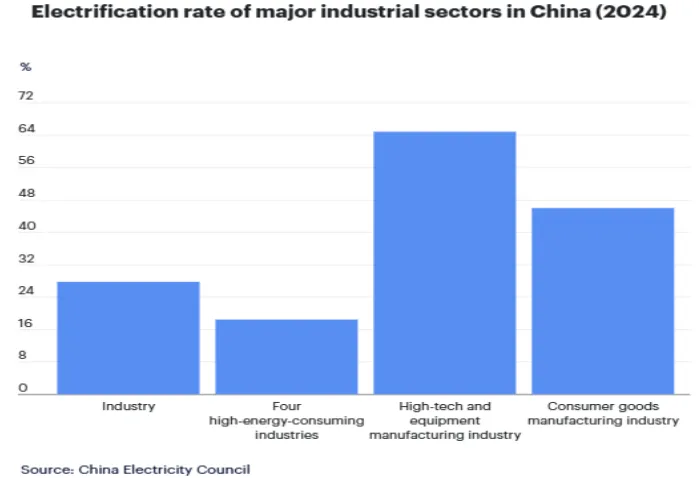 中国终端电气化率(2024年约28%)领先于欧美,预计2030年电力占终端能源消费比重将达35%。