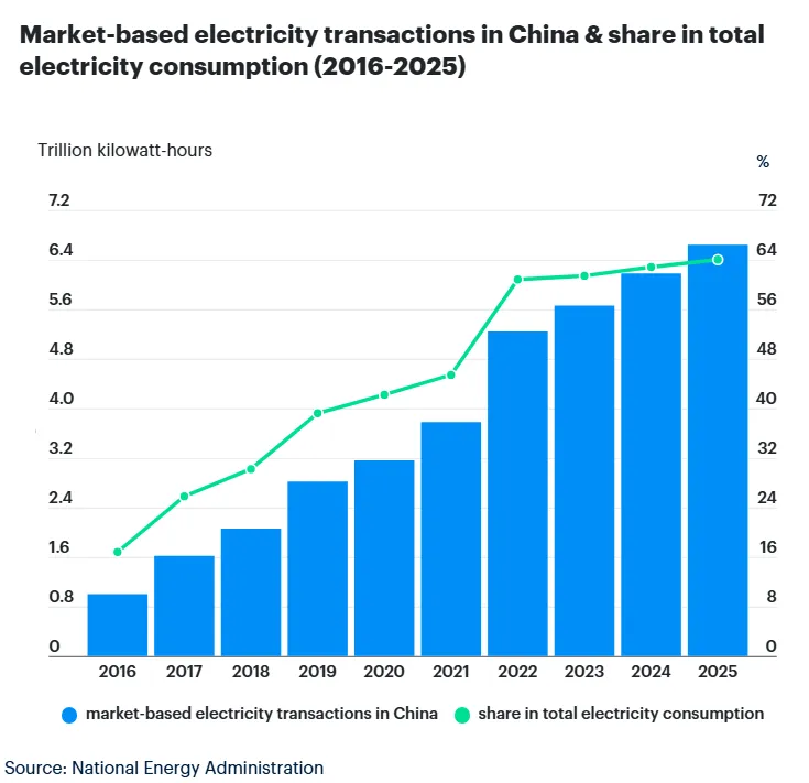 - 进展:2025年市场化交易电量占比已稳定在64%以上,跨省区中长期交易和现货交易持续增长。负电价现象出现,表明市场信号开始反映系统灵活性不足。