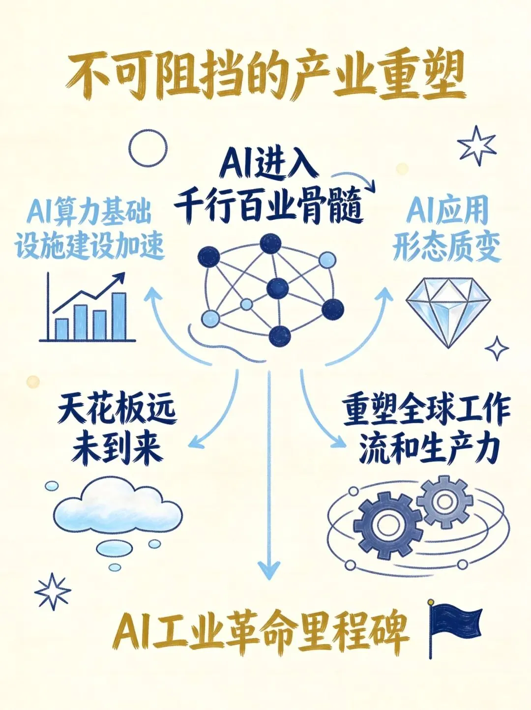 它向世界宣告了两个事实:第一,AI算力基础设施的建设仍在加速,天花板远未到来;第二,AI的应用形态正在发生质变,Agentic AI拐点的到来,意味着AI将真正深入到千行百业的骨髓中,重塑全球的工作流和生产力。