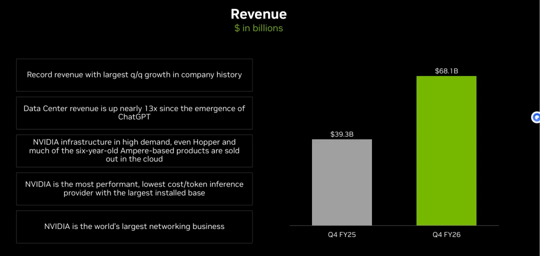 这标志着一个时代的切换:AI算力需求,已经从未来的潜力故事,变成了当下最赚钱的现金牛,而且猛到能改写行业规律。传统上,科技公司Q1往往是淡季,但英伟达给出的Q1指引,比这个已经爆炸的Q4还要高,ai的热度,已经强到能打破行业周期束缚了!