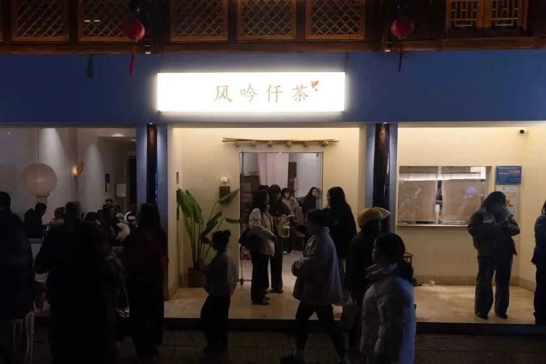 大年初一晚上,和朋友在大小河街闲逛。整条街人潮涌动,热闹非凡。有意思的是,古茗、蜜雪冰城、瑞幸这些遍地开花的连锁店门前,客流反倒显得稀松平常;风吟仟茶门口却实实在在排着队──本地人和游客混杂在一起,耐心等着那一杯风味。