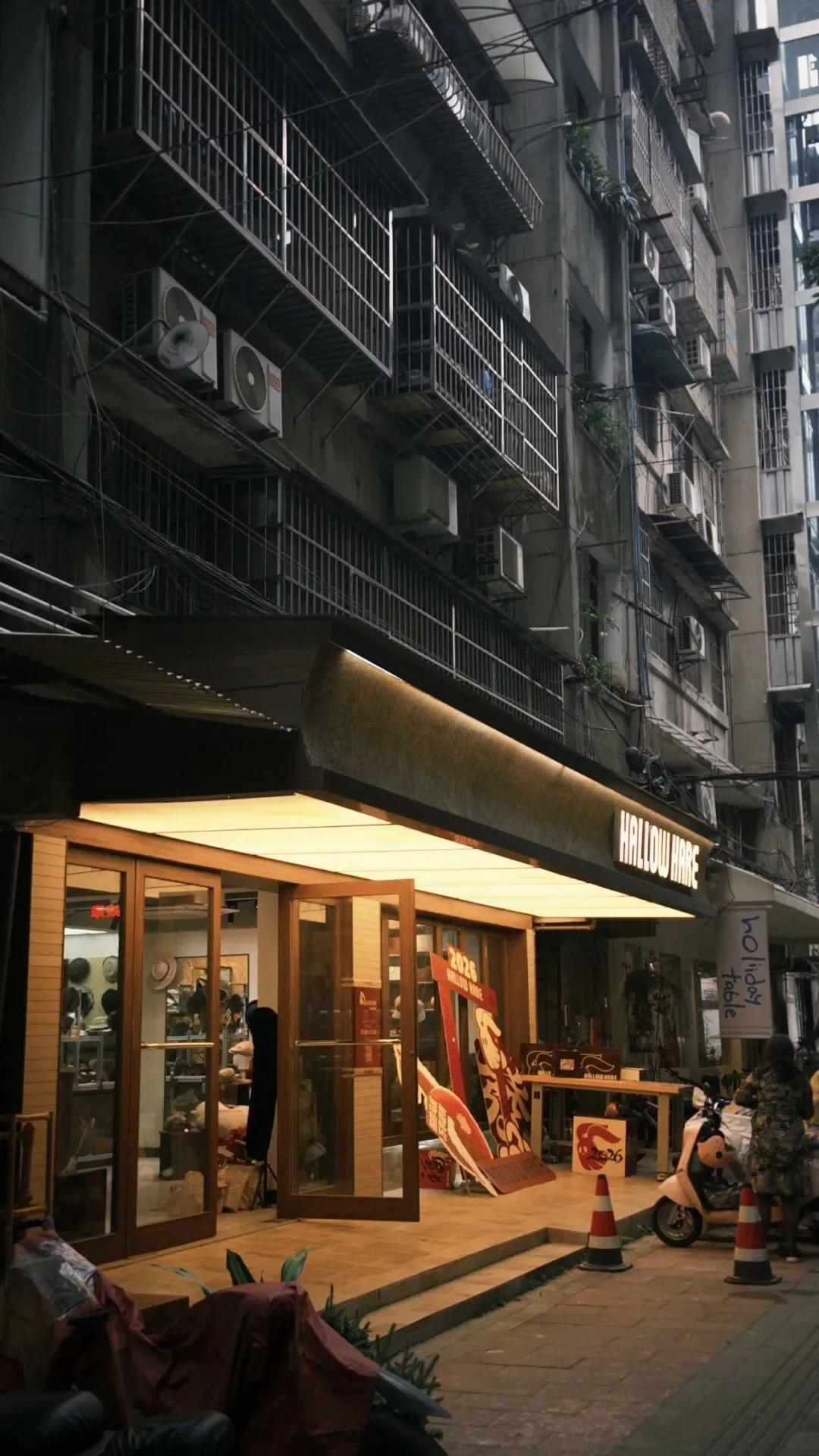 HALLOWHARE 就隐匿在东山口一条鲜为人知的巷子里,醒目的招牌与楼上保留着七十年代风貌的旧楼形成强烈对比,但这种反差恰恰契合了广州那种「包罗万有」、高度包容的城市氛围。