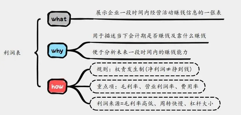 1)用于描述当下会计期是否赚钱及靠什么赚钱