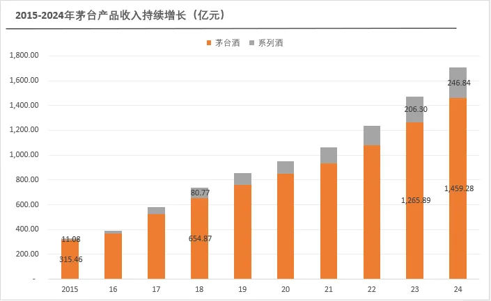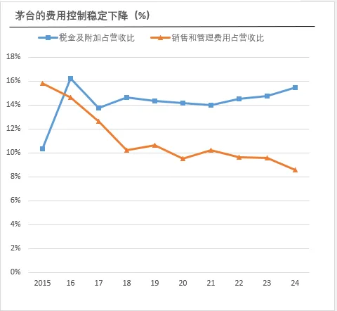 茅台的获利,大致与营收增长同步,2015年茅台的净利润只有164.55亿元,2024年已经增加到893.35亿元,10年间复合增长率20%。
