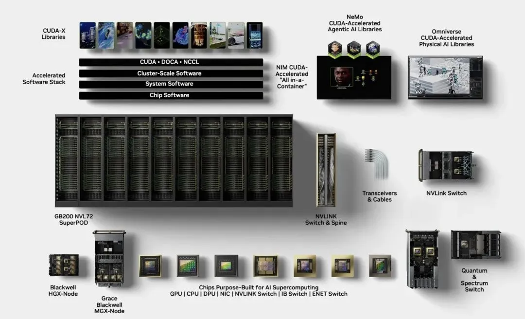 CUDA软件持续优化,仅在4个月内就在GB200与NVL72上实现最高5倍性能提升;计划在每一代产品上实现X倍级的每瓦性能跃迁,并在长期持续扩大领先优势;