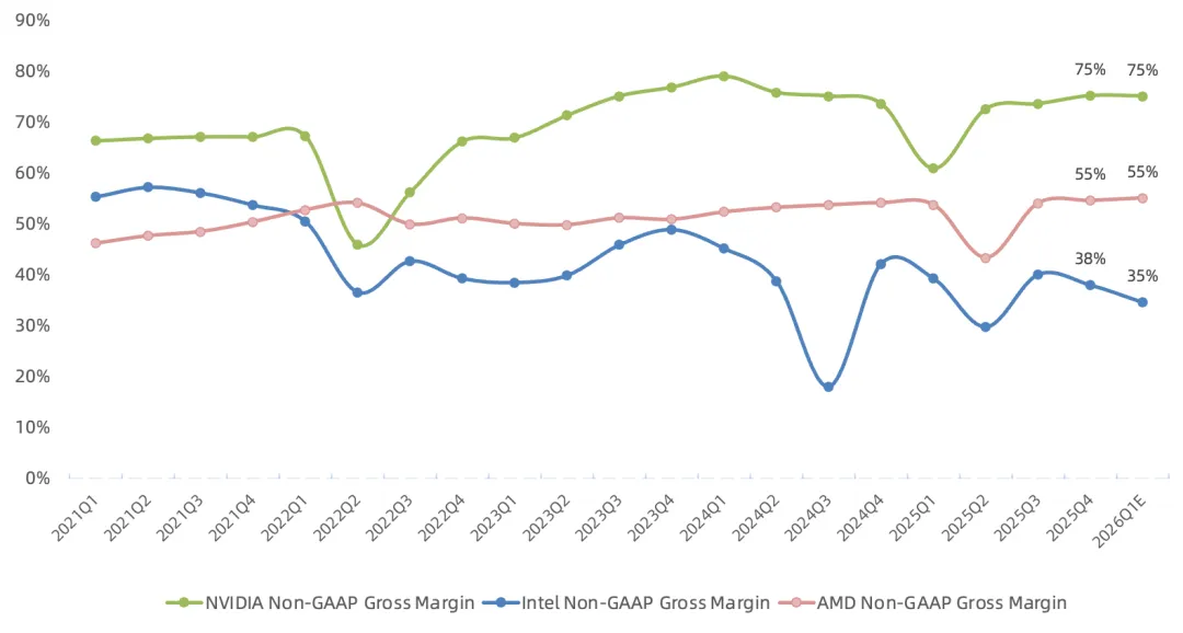 宣布自下季度起,公司NonGAAP口径不再剔除股权激励(股权激励占营收比例远超其他半导体公司,占运营费用比例更是不低),主动收紧NonGAAP口径,也体现出管理层对后续利润增长的信心; 管理层表示只要每代能实现远超摩尔定律的每瓦性能提升、以及远超系统成本涨幅的每美元性能提升,就能维持毛利率; 本财年主权AI营收超300亿美元,同比增长两倍;长期预计主权AI机会至少与AI基础设施市场同步增长,各国将按其GDP比例投入AI;