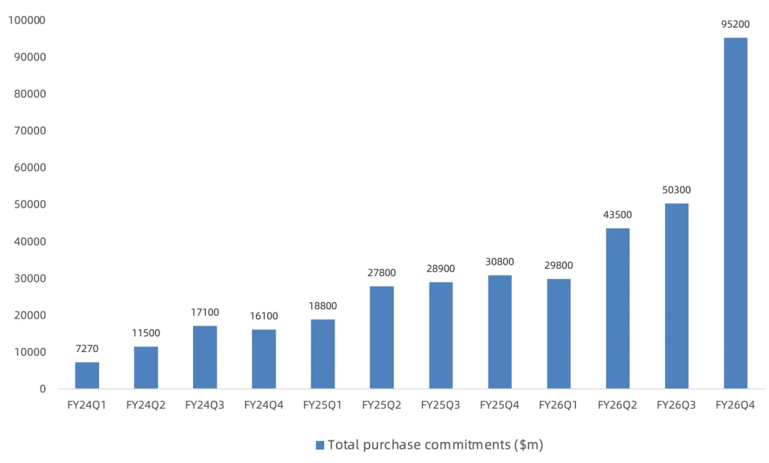 本季度Total supply-related commitments高达952亿美元,环比暴增89%,提前锁定包括台积电在内的晶圆及CoWoS封装产能、包括三星、SK海力士、美光在内的HBM、DRAM、NAND产能;