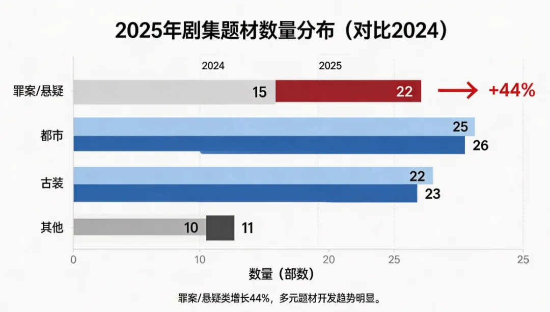 2025年最值得关注的题材变化:罪案/悬疑类剧集数量同比增长44%。