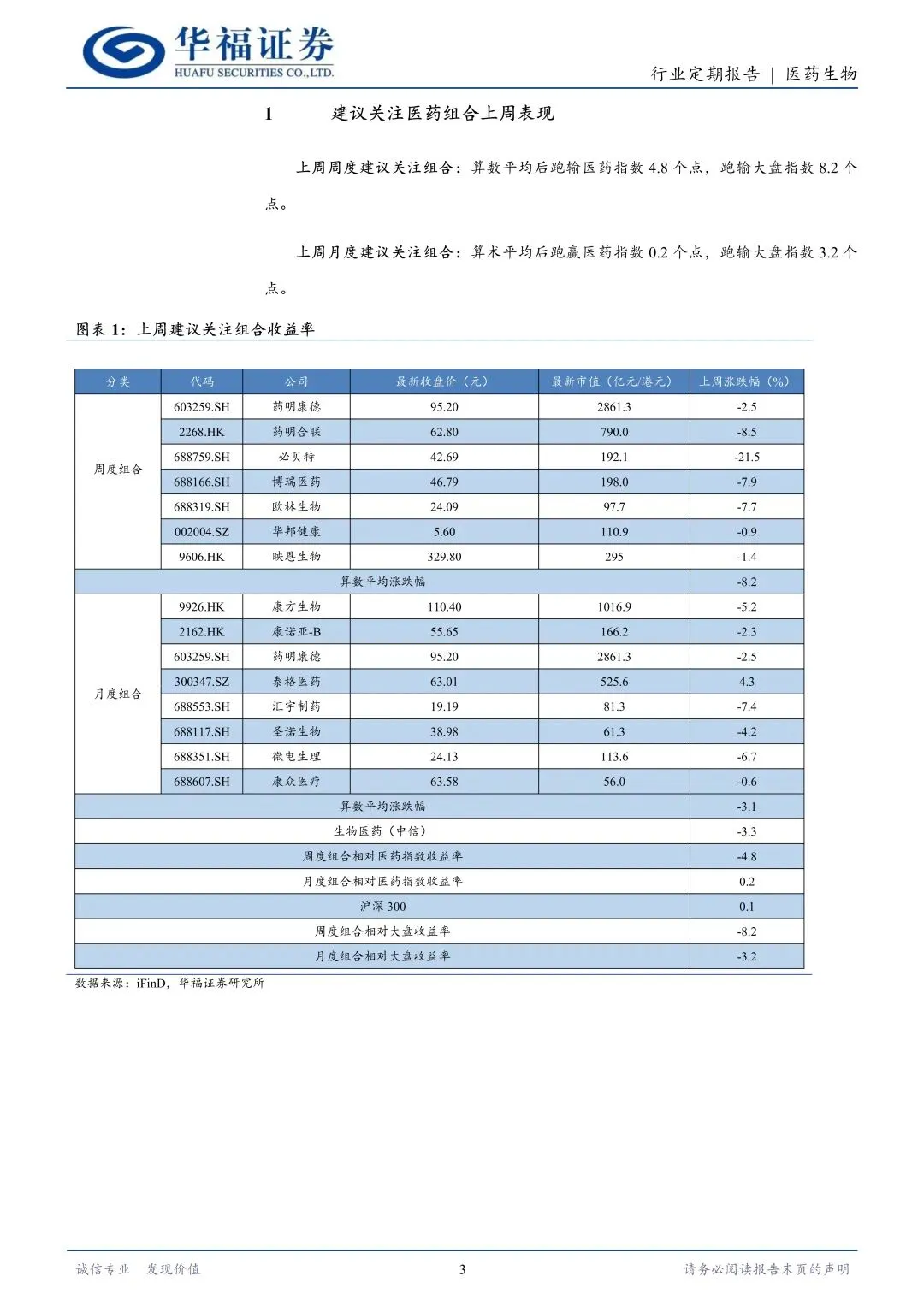 行情回顾:本周(2026 年 1 月 26 日- 2026 年 1 月 30 日)中信医药指数下跌 3.3%,跑输沪深 300 指数 3.4pct,在中信一级行业分类中排名第 22 位;2026年初至今中信医药生物板块指数上涨 3.0%,跑赢沪深 300 指数 1.3 pct,在中信行业分类中排名第 18 位。本周涨幅前五的个股为:凯普生物(+ 26.5%)、华兰疫苗(+ 12.8%)、德展健康(+ 8.8%)、万泽股份(+ 7.9%)、华康医疗(+ 6.9%)。
