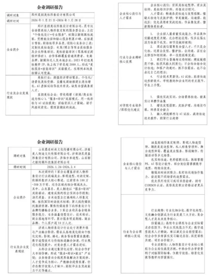 为破解高等教育与产业需求衔接痛点,落实“以就业为导向”的人才培养目标,强化学生专业实践能力与提升职业认知水平,1月26日—2月25日,设计艺术学院组织开展“六个一”寒假“探行业趋势·明职业方向”专业调研实践活动,引导学生走出课堂、深入行业一线,在实践中明晰职业定位,为未来职业发展筑牢根基。