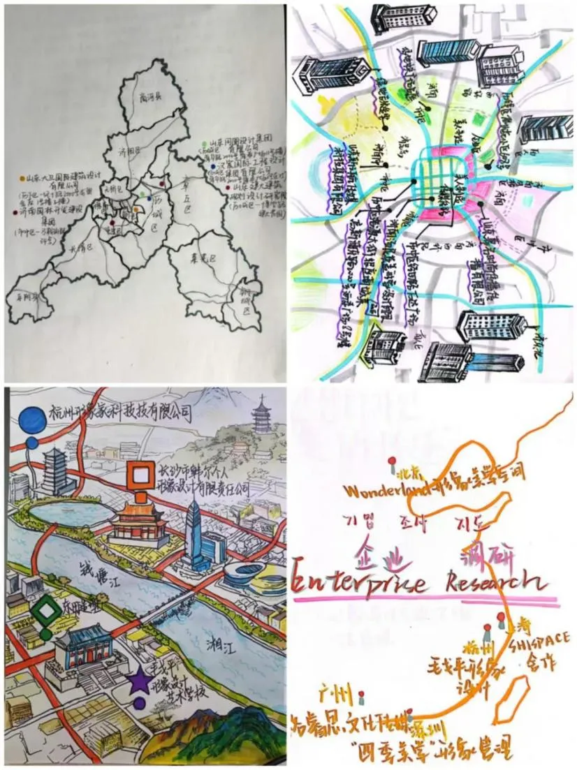 本次实践活动聚焦专业特色与学生发展需求,明确设置专业调研报告撰写与调研手绘地图制作两大核心实践内容,为学生搭建了理论联系实际的实践平台。活动期间,参与学生围绕自身所学专业,选取家乡当地设计类企业、机构作为调研对象,通过文献研究、数据梳理、企业走访等方式收集信息,形成了兼具深度与创意的调研成果。调研报告系统梳理了行业发展现状与人才需求,学生结合自身专业提出了对未来职业规划的思考。调研手绘地图则彰显设计专业特色,以生动的笔触呈现企业分布与行业脉络,既体现学生专业功底,也凸显了实践成效。