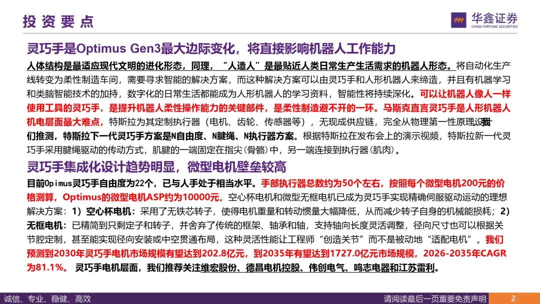 微型电机行业专题报告:灵巧手是Optimus Gen3最大边际变化,微型电机成为兵家必争之地-华鑫证券