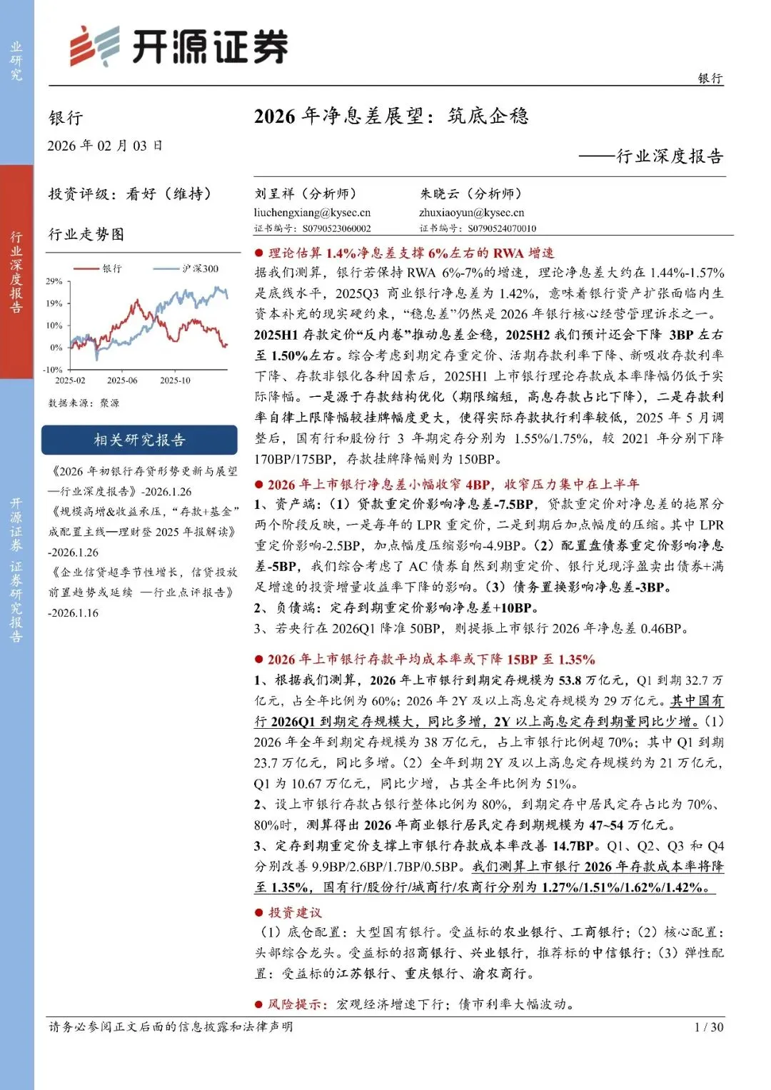 回复暗号:银行行业深度报告:2026年净息差展望,筑底企稳-260203-开源证券-30页
