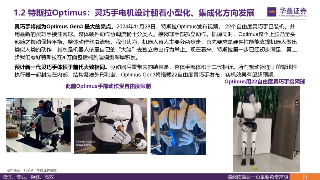 灵巧手是Optimus Gen3最大边际变化,将直接影响机器人工作能力