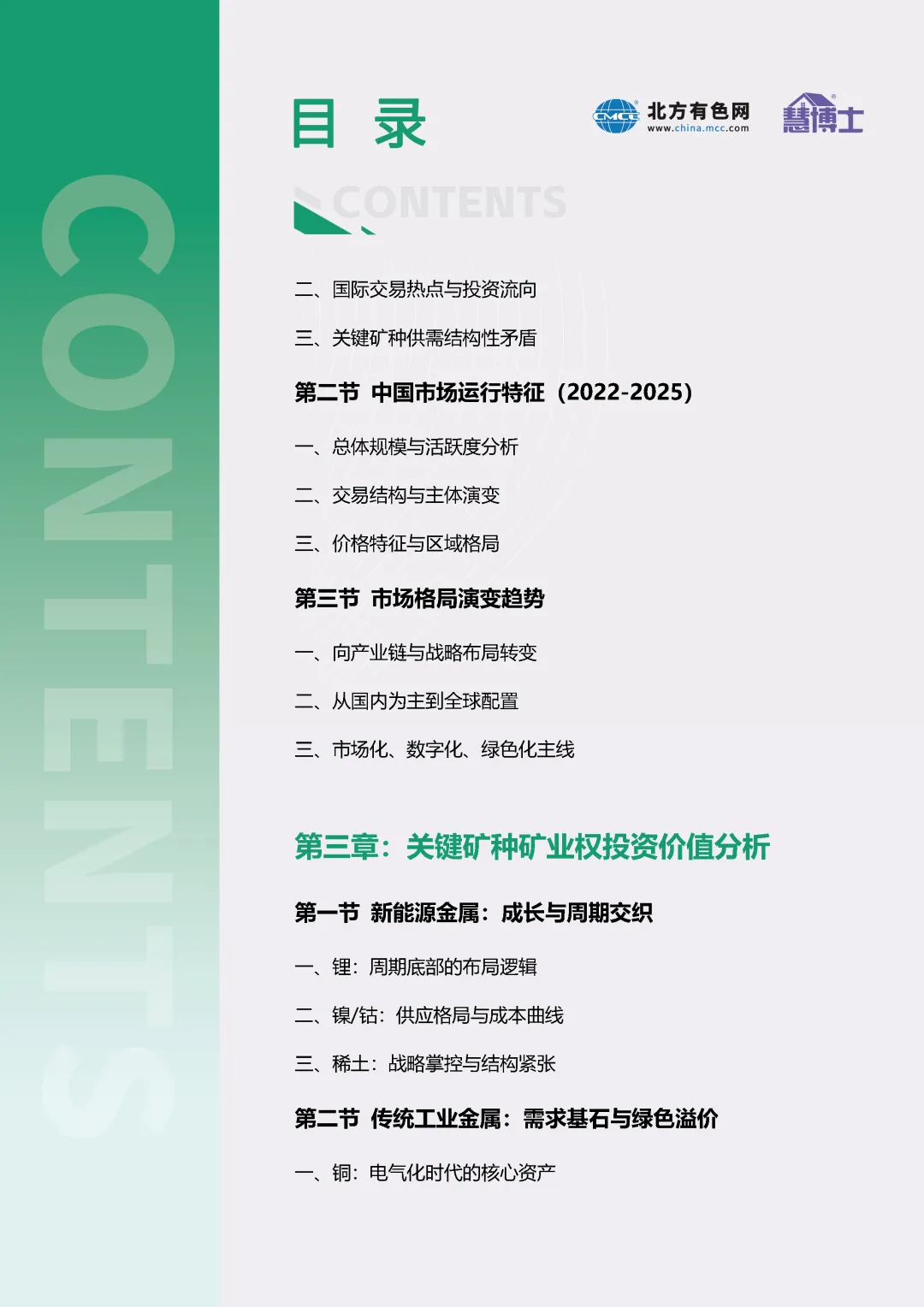 二、国际交易热点与投资流向三、关键矿种供需结构性矛盾