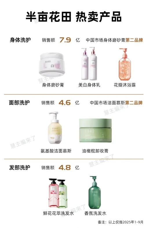 洞察:产品升级——原亮滑磨砂膏拿到美白特证后升级为美白磨砂膏。25年沐浴品类排名10,增速177%,份额+0.9pp