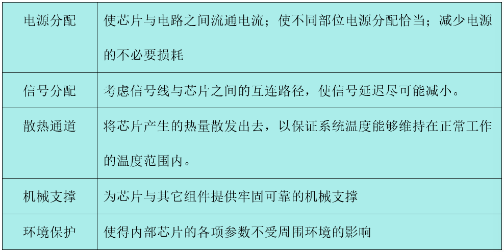 表 1 芯片封装的五大功能