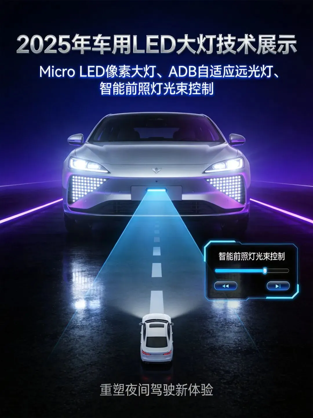 汽车照明正经历一场静默却深刻的革命——从功能件蜕变为智能交互的核心载体。2025年全球车用LED市场规模预计达34.51亿美元,车灯整体产值高达357.29亿美元2025年上半年,LED近光灯装配量达941.2万辆,装配率达89.1%,同比增长9.9%辅助驾驶状态灯(ADS灯、小蓝灯)2025年上半年装配量为75.5万辆,装配率7.1%,同比增长1098%Mini LED技术:2025年车载Mini LED背光屏出货量同比增长超100%,应用车型覆盖20万至百万级价格带Micro LED像素大灯:奥迪、保时捷、蔚来等品牌已在其旗舰车型中导入,单灯可集成数万颗微米级芯片,实现万级像素动态控制DLP AR-HUD:零跑C11搭载的60英寸AR-HUD采用艾迈斯欧司朗OSTAR™ RGB LED光源,成为智能座舱新标配鸿利智汇:为长安启源Q07提供尾灯、高位刹车灯等全套光源方案,打入奥迪、大众、现代等国际品牌供应链;已完成Mini LED尾灯、ADB大灯样件开发,计划2026年推出Micro LED投影车灯样品国星光电:多款车用LED通过AEC-Q102认证,推出像素间距30-40微米的数字化光源乾照光电:HUD显示LED已配套理想L9、小鹏G9等热门车型GB 45831-2025《机动车用光源安全性要求》从推荐性升级为强制性,首次系统性地将LED光源纳入严格安全监管框架GB4599-2024新国标于2025年7月实施,提高了LED前照灯测试门槛,加速技术落后企业出清六、可持续发展实践