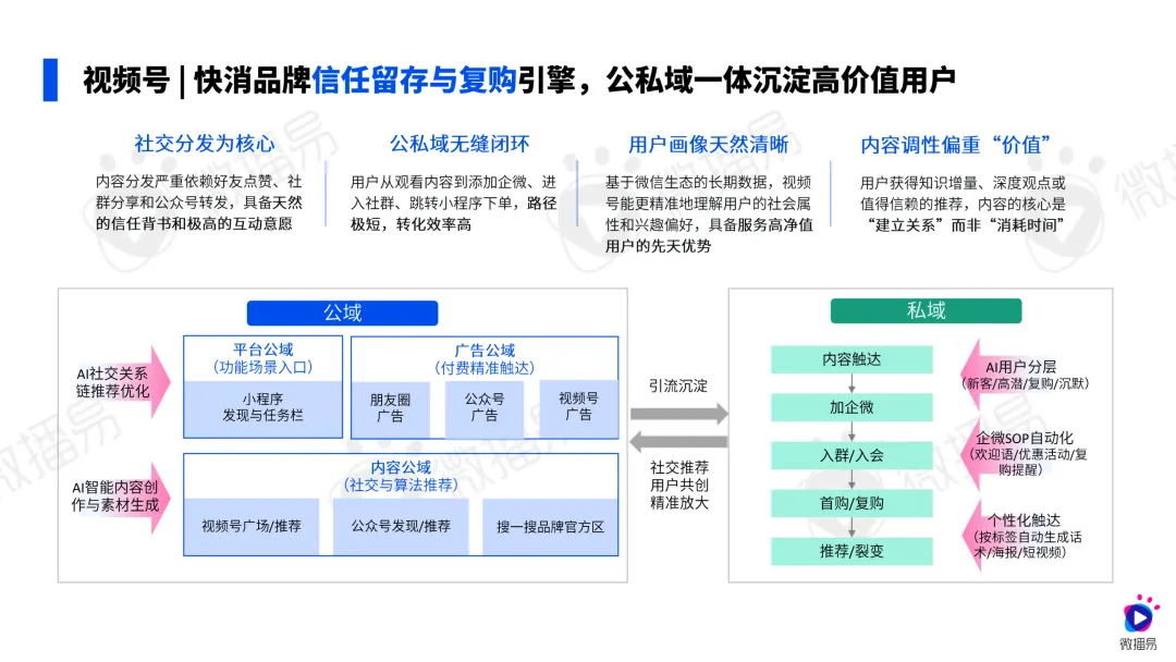 这三大增长引擎的核心都是围绕效率破局,帮品牌搭建适配存量博弈时代的AI营销体系。AI心智占位的关键的是实现营销模式的三大转变,不再是被动响应需求、盲目打扰用户、单纯追逐流量,而是转向主动预测需求、精准服务用户、实现品牌与用户的深度耦合,针对主流平台制定专项策略,提前预判需求峰值并精准介入,抢占用户心智。内容营销工业化则要跳出流量思维,聚焦商品与用户的标签耦合,通过小额测试、放量复制等流程,打造可复用的内容资产,追求长期资产复利而非单次爆款。数据基建则是搭建全链路数字底座,贯通产品研发、上市推广等全环节,让数据真正驱动洞察、优化供给,实现全流程智能升级,这也是当前全域经营的核心支撑。