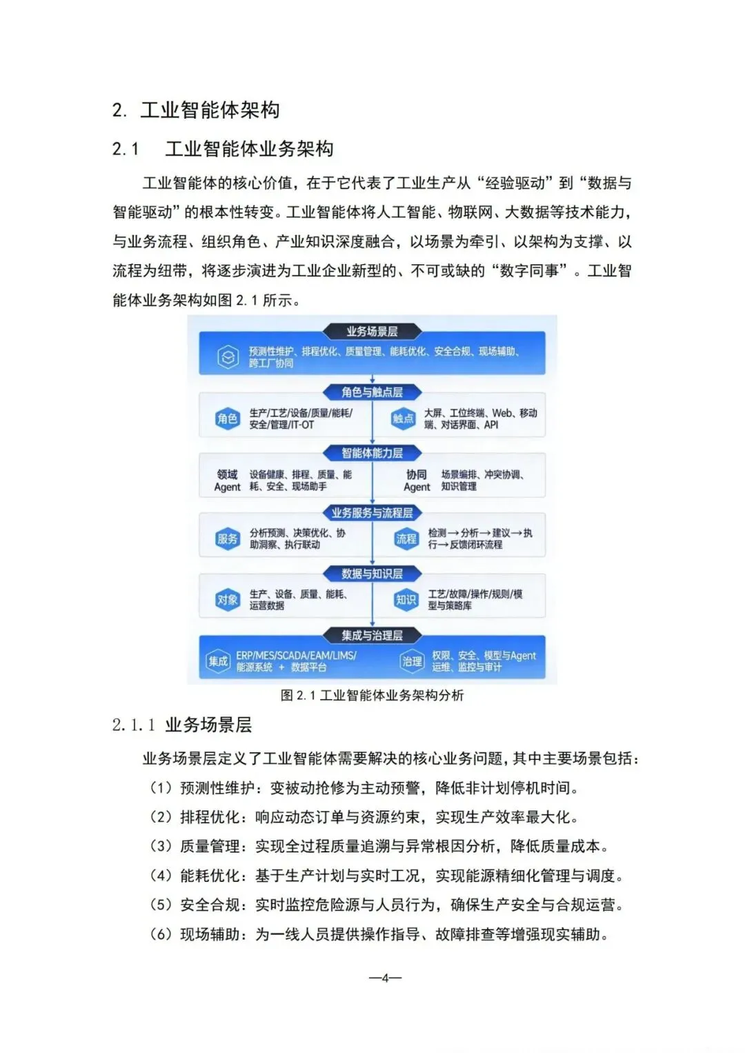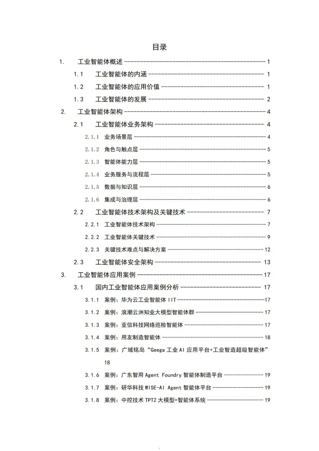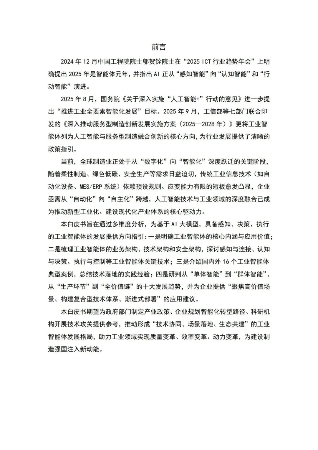 本白皮书围绕工业智能体,阐述其内涵、应用价值、发展现状,梳理业务、技术及安全架构,介绍国内外16个典型案例,研判十大发展趋势并给出应用建议,为相关方提供参考。工业智能体概述