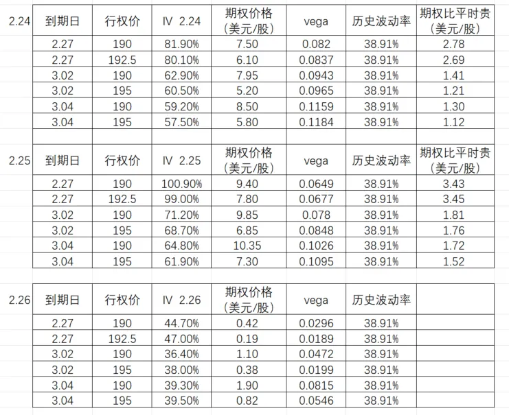 观察表格可知:财报落地后叠加IV断崖式腰斩,由于虚值期权的Vega值通常较高,对波动率变化极为敏感,因此在IV回归理性时,其价值缩水尤为剧烈。叠加开盘股价暴跌,无数单腿Call开盘跌超80%,表中虚值Call价值大幅缩水。