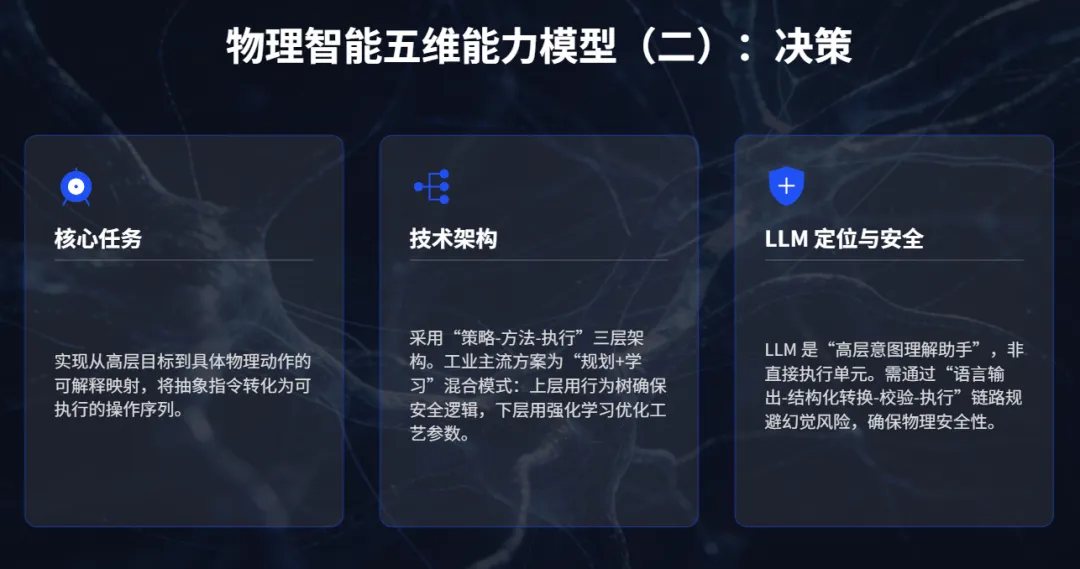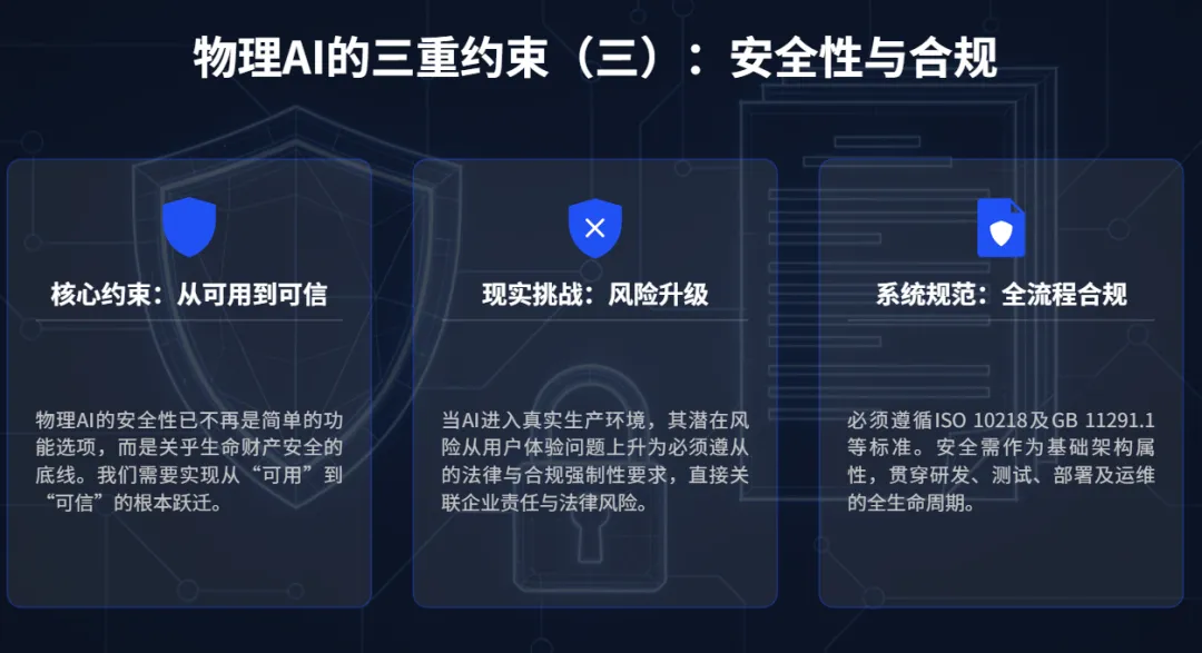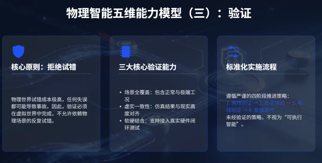 这就是为什么物理AI绝非"把大模型接入硬件"那么简单。它要求构建"感知-决策-验证-执行-反馈"的完整闭环,在不确定性、连续性、安全性的三重硬约束下实现可靠运行。