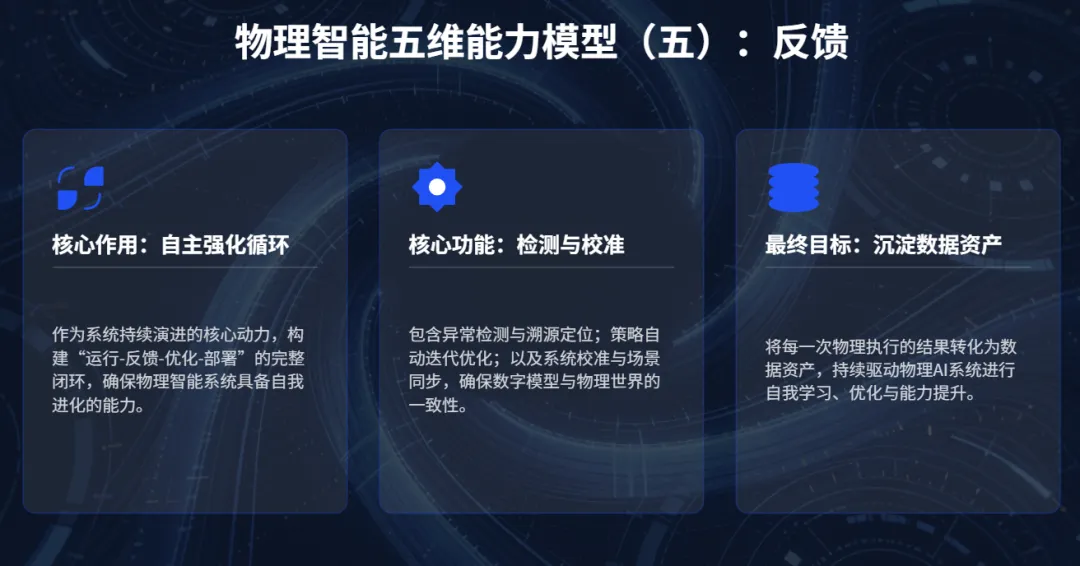白皮书首次系统构建了物理智能五维能力模型,这五个维度并非线性串联,而是多回路耦合的协同系统: