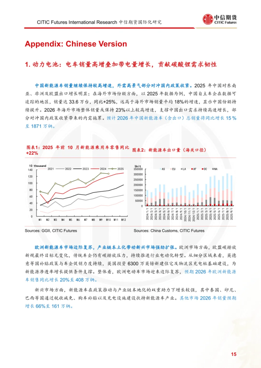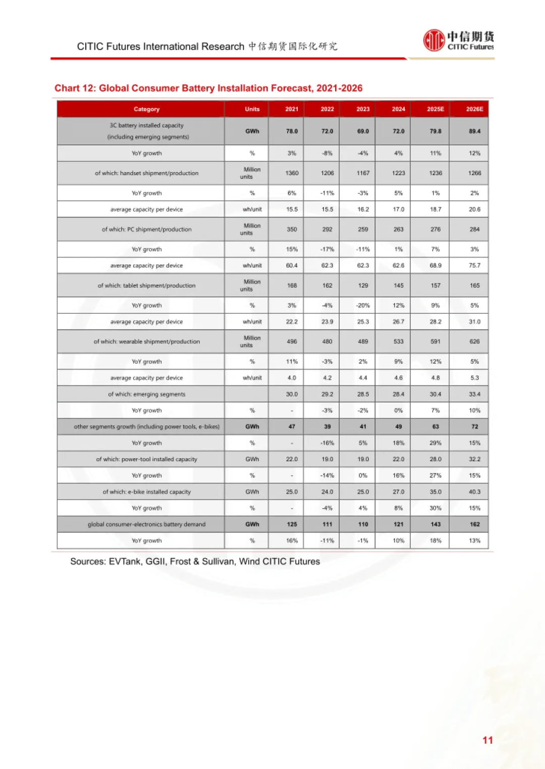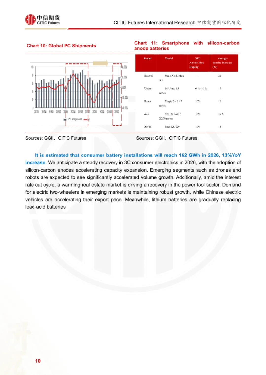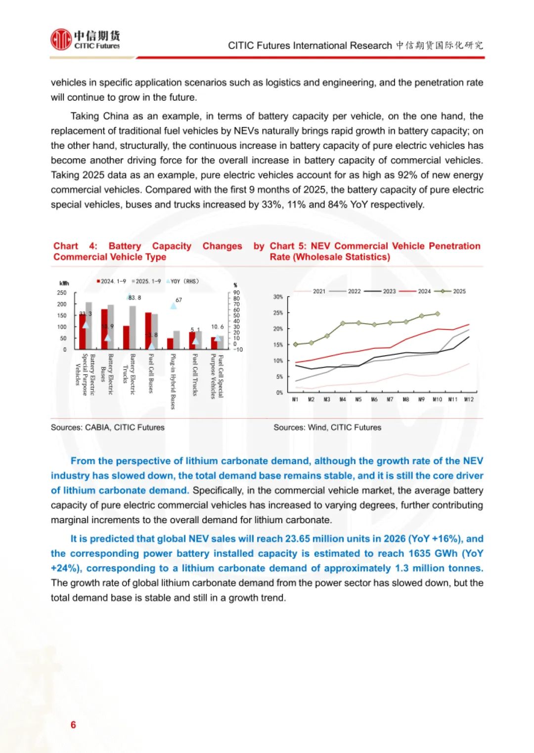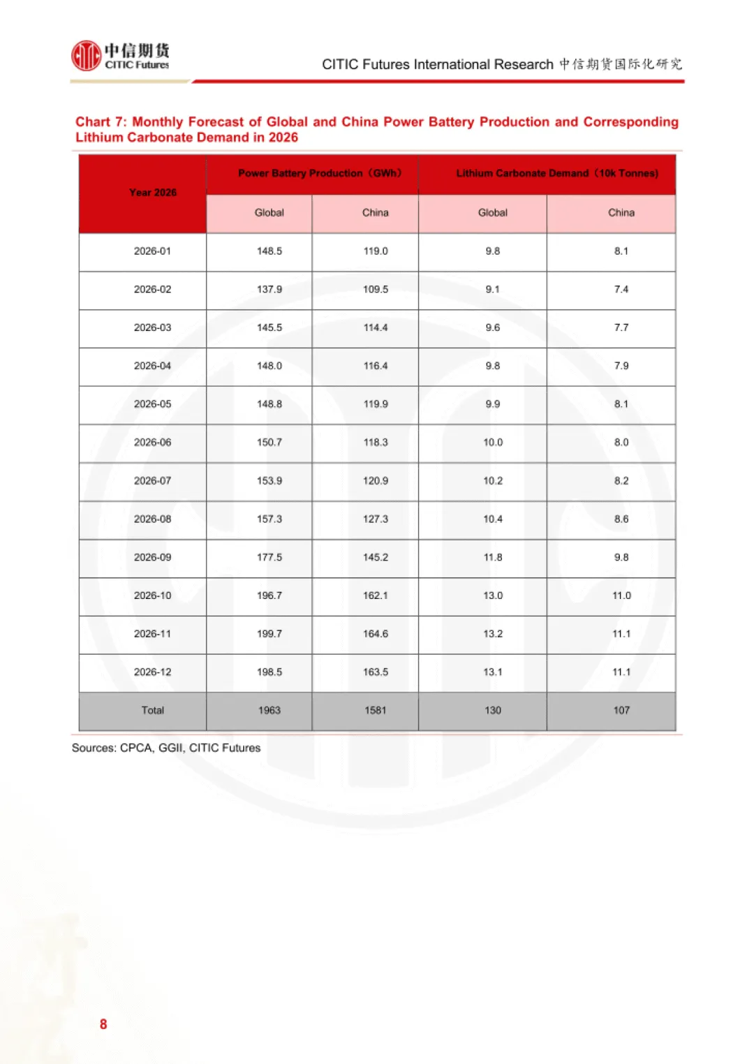 报告为中信期货 2026 年 2 月发布的碳酸锂需求研究报告,聚焦动力电池、消费电池两大核心领域,结合储能三种增长情景,测算 2026 年全球及中国碳酸锂需求规模与增速,并指出行业核心驱动因素与潜在风险。