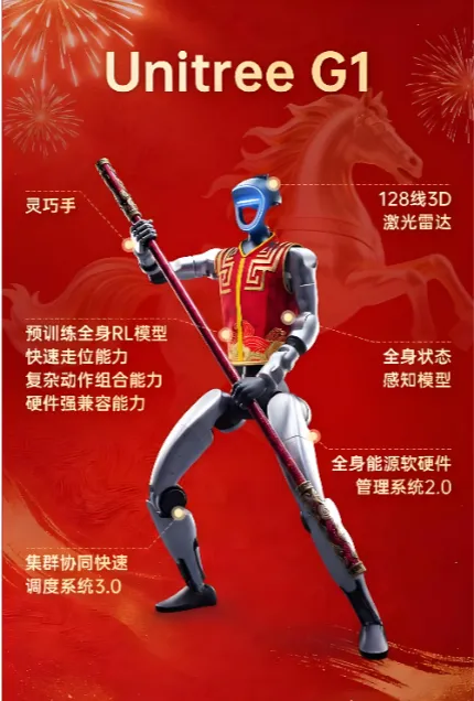从春晚展示来看,机器人的运动控制与集群协同能力已实现跃升。宇树机器人完成托马斯360°回旋与侧空翻等高难度特技;魔法原子完成百台级四足机器人编队运行;银河通用、松延动力在仿生形态与灵巧操作方面各有突破。