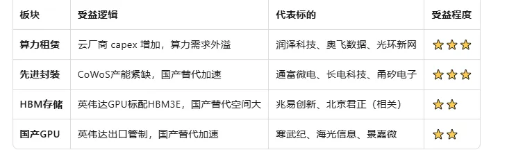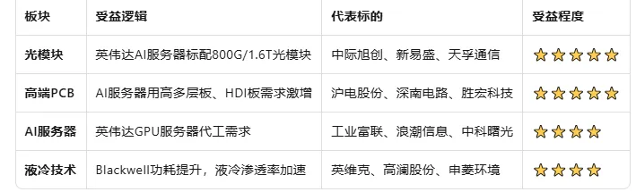 受英伟达业绩超预期刺激,美股科技“七姐妹”隔夜集体上涨,同时也刺激A股AI硬件方向全面走强。A应用方面,并没有显著表现。但元器件和通信设备这两个行业,是AI硬件的主要行业,今天表现不错,是否意味着AI硬件行情有望迎来一段行情,能否走出主线,还有待观察。目前看得到的是,5日、10日,元件行业有比较明显的资金流入。逻辑: 英伟达数据中心营收增长78%,意味着配套的光模块需求同步高增。且Blackwell架构对高速光模块(800G/1.6T)的需求是指数级的。A股标的: 中际旭创、新易盛、天孚通信。(这些估值其实都不算便宜了。)这些公司是英伟达供应链的核心,业绩兑现度最高。财报中的存货增长,映射到A股就是光模块厂商的订单排期延长。英伟达Blackwell芯片功耗极高,这对基础设施提出了硬性要求。逻辑: 英伟达下一代芯片必须配合液冷,风冷已无法满足散热需求。A股标的: 英维克、申菱环境。随着Blackwell放量,液冷渗透率将从10%向50%跃迁。(也不便宜。)逻辑: 英伟达业绩好,证明大模型训练成本依然高昂。这对A股的AI应用公司(如办公软件、传媒)是双刃剑。一方面证明AI是真趋势,另一方面也意味着它们需要持续向英伟达类企业“交钱”(购买算力伤害利润表),若没有爆款应用,利润将被高昂的算力成本侵蚀。(这里需要持续关注应用能否成为爆款的前兆。。。包括目前国内的互联网互头,内卷加上AI应用目前有点春节热的迹象,需要谨慎重投入这块,只能重点观察,持续观察。)逻辑: 英伟达越强,国产替代的紧迫性越强。虽然短期业绩无法对标,但政策逻辑和“B计划”逻辑会支撑估值。投资的策略: 更多受国内政策和供应链自主化进程驱动,而非完全受英伟达财报影响。 随着英伟达业绩基数变大,增速终将放缓。A股投资需从“炒概念”转向“看业绩”,优先选择那些在英伟达和国内头部厂家供应链中份额稳固、且能跟随技术迭代提升价值量的公司。免责声明:本分析仅供参考,不构成投资建议。股市有风险,投资需谨慎。