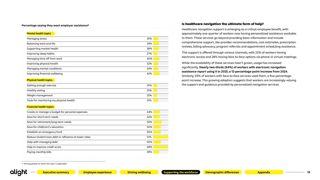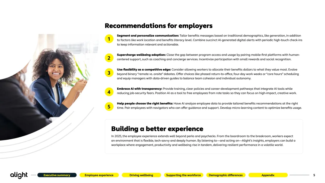 趋势洞察来看,员工体验已进入“精细治理”阶段。未来竞争不取决于福利数量或办公地点本身,而在于是否能通过数据、AI与人工支持的结合,帮助员工做出更好的健康与财务决策。能够同时降低不确定性、提升掌控感的组织,将在留才、效率与长期绩效上形成结构性优势。