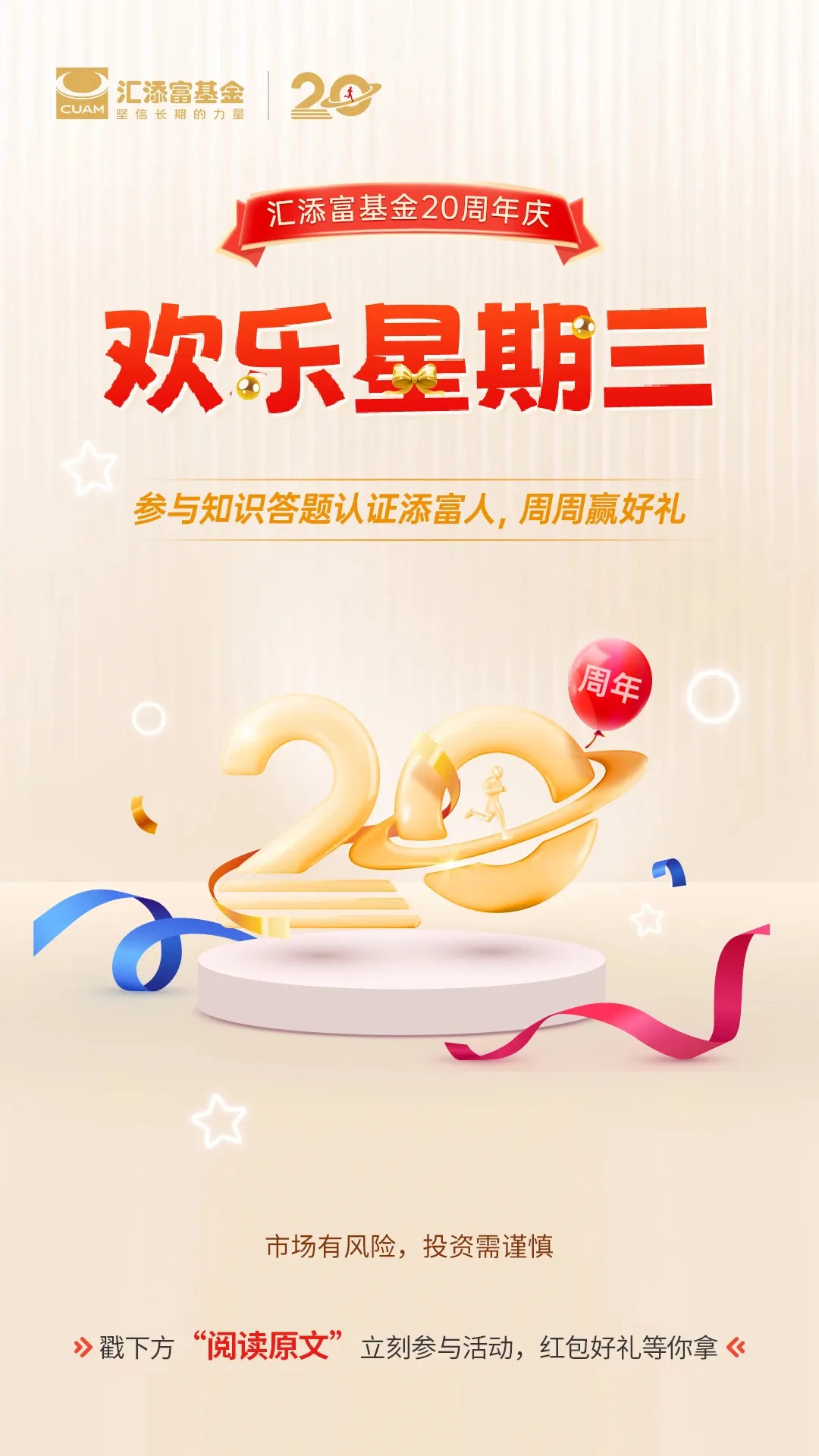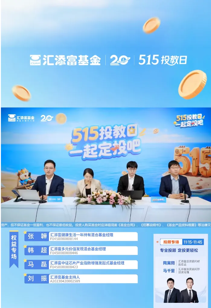 2025年,是汇添富基金成立的20周年。二十载悠悠岁月,为感恩投资者的信任与陪伴,汇添富发起“添富二十年 欢乐星期三”系列投教活动,以知识为纽带,与投资者共赴一场添富二十年的投教之约。