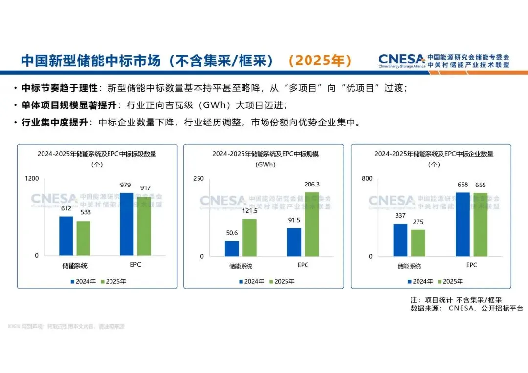 报告总结了“十四五”期间中国新型储能产业在战略定位、技术突破、规模增长、市场机制等方面的里程碑成就,分析了2025年项目规模、招中标市场、产业发展及政策环境,并对未来市场趋势进行了展望。