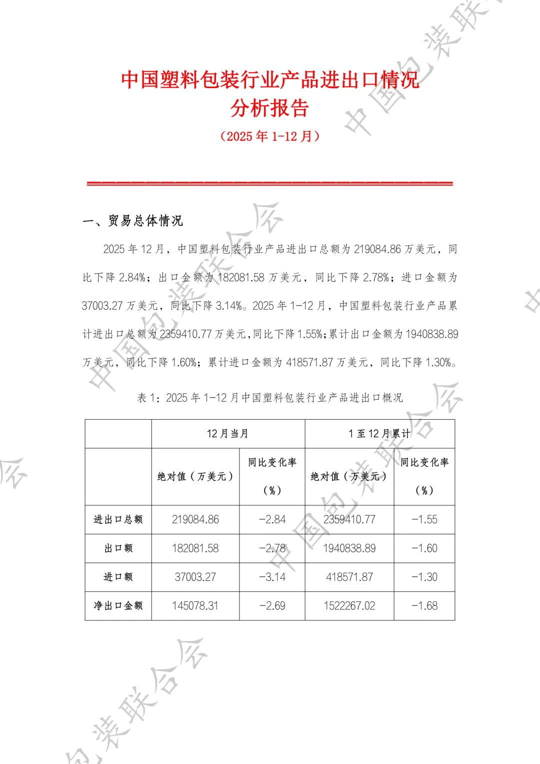 行业资讯丨行业总结:中国塑料包装行业产品2025年度进出口情况分析