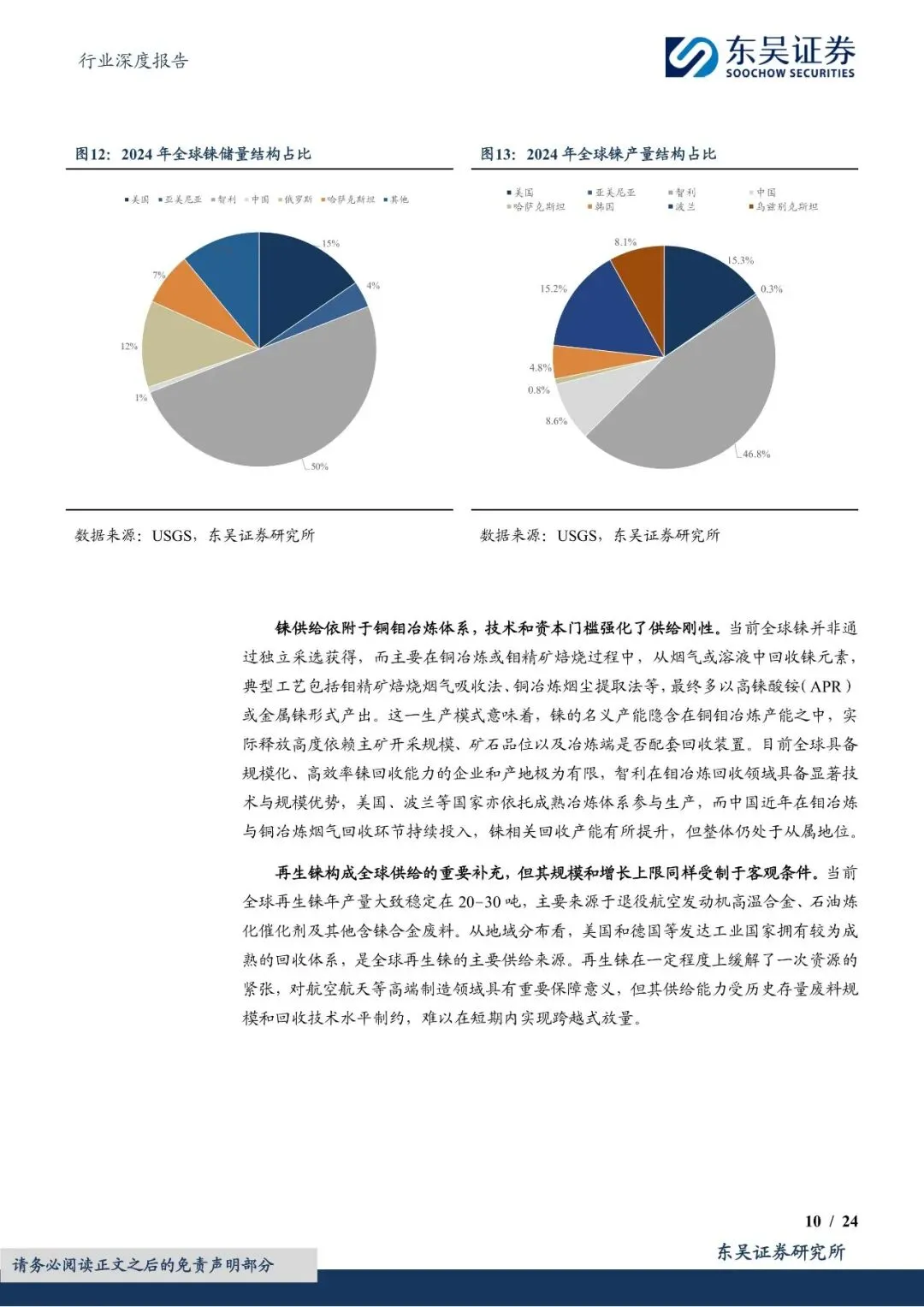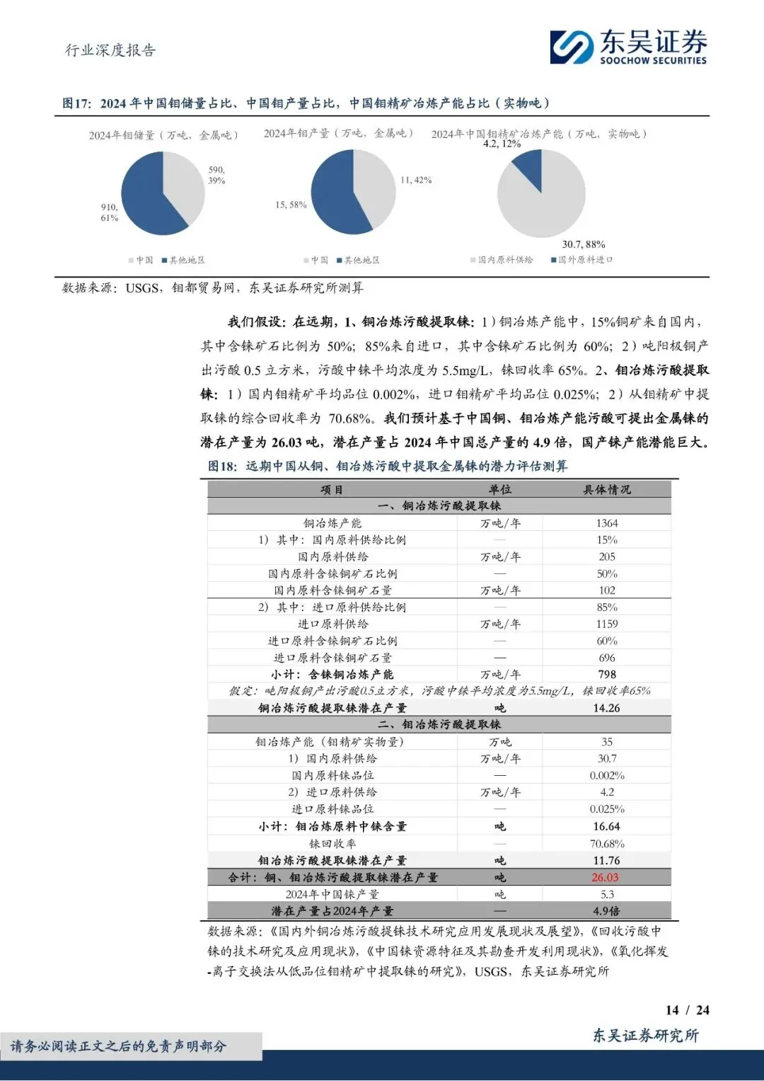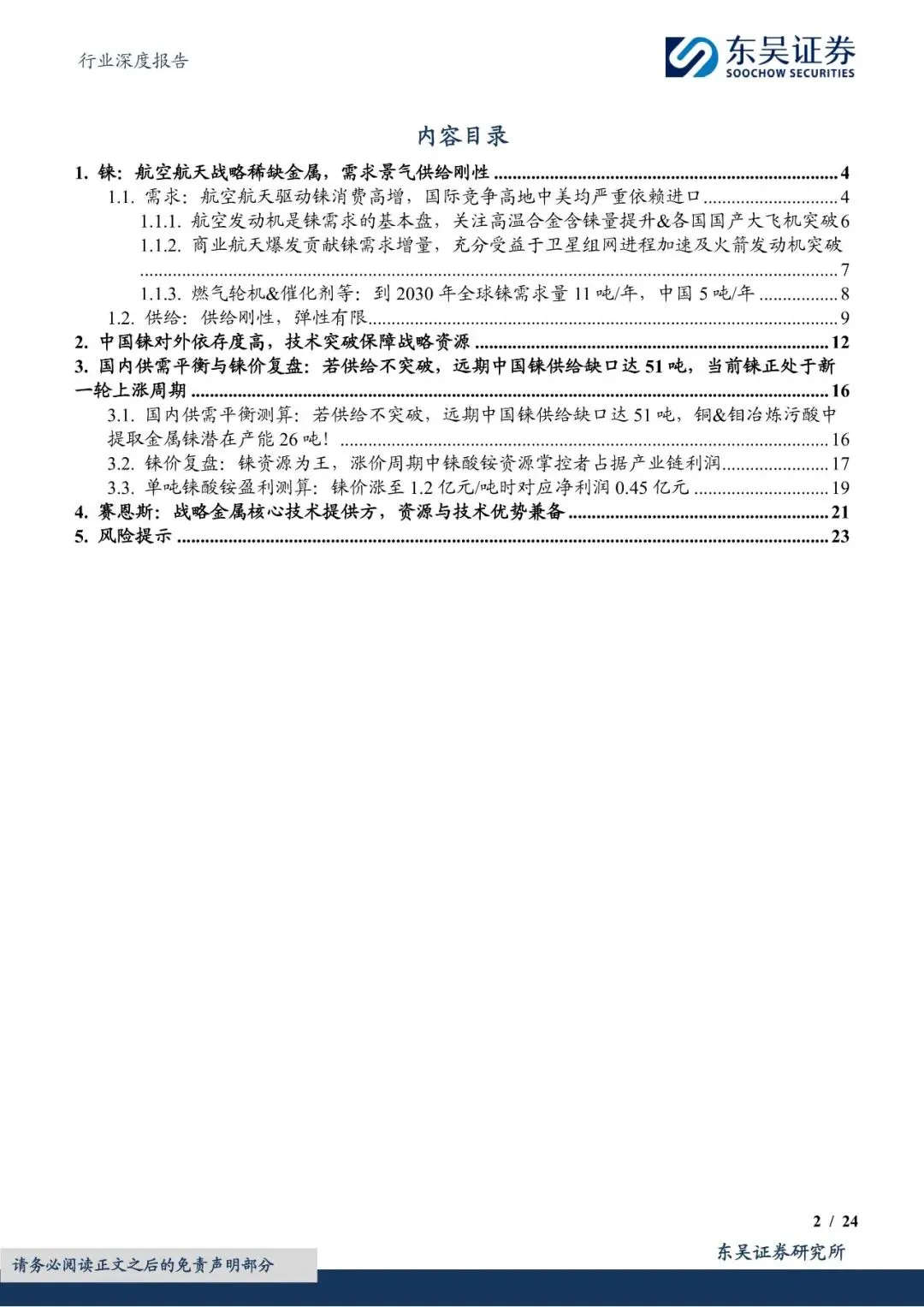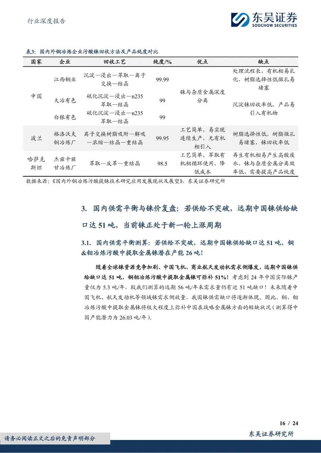 尽管中国铼资源储量有限,但通过铜钼冶炼副产品回收铼的技术逐步成熟,为铼供给提供了重要补充。然而,由于全球铼资源供给刚性且弹性有限,加之美国通过长协战略锁定主要产地资源,中国铼资源供给面临严峻挑战。因此,技术突破和资源卡位成为保障中国铼供给的关键。报告提到,赛恩斯等环保企业通过自主研发和技术创新,掌握了铼回收的核心技术,并与紫金矿业等上游矿企合作,实现了铼资源的稳定供给。未来,随着铜钼冶炼污酸提铼技术的进一步推广和应用,中国铼资源供给紧张的局面有望得到缓解。