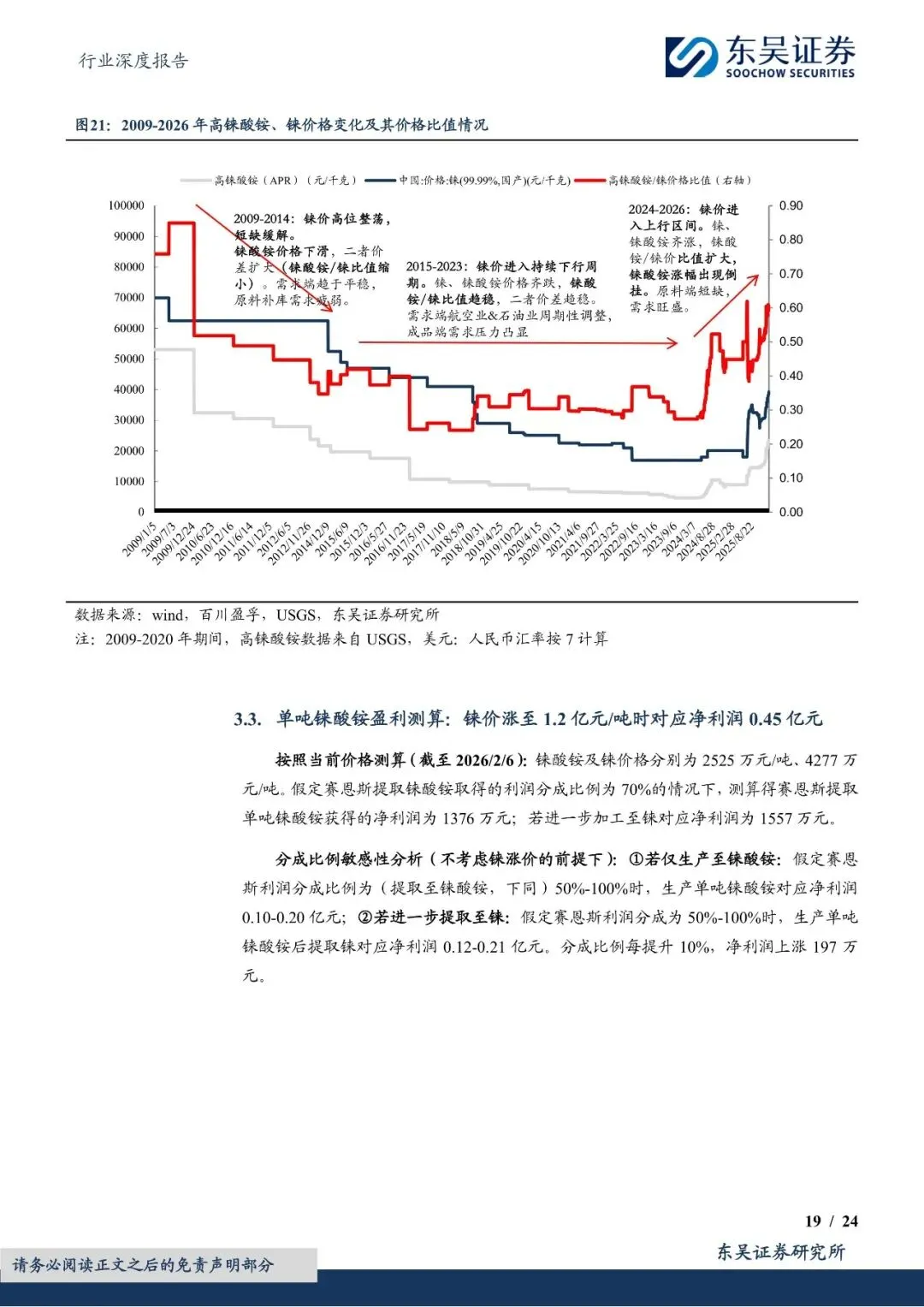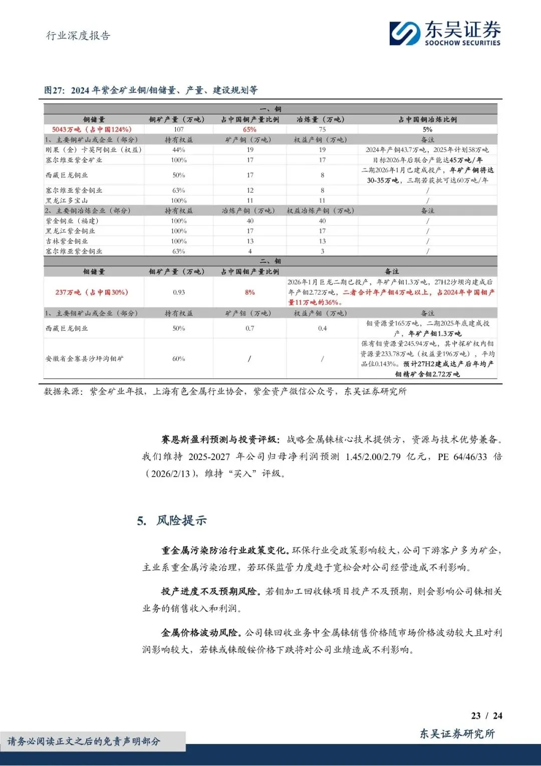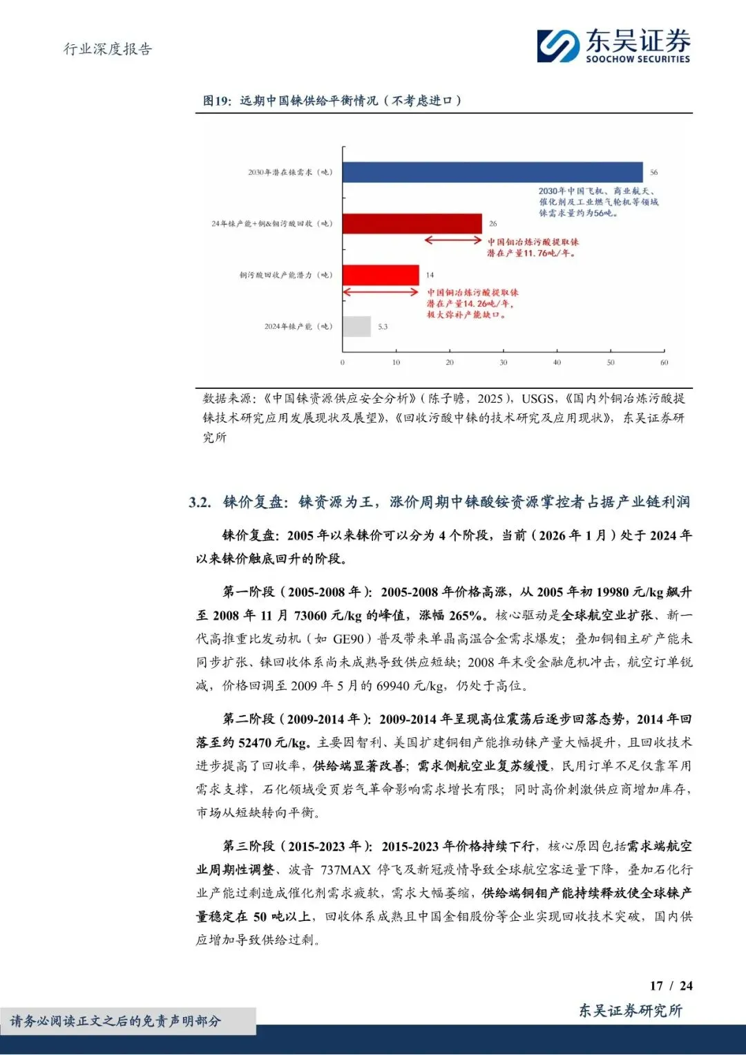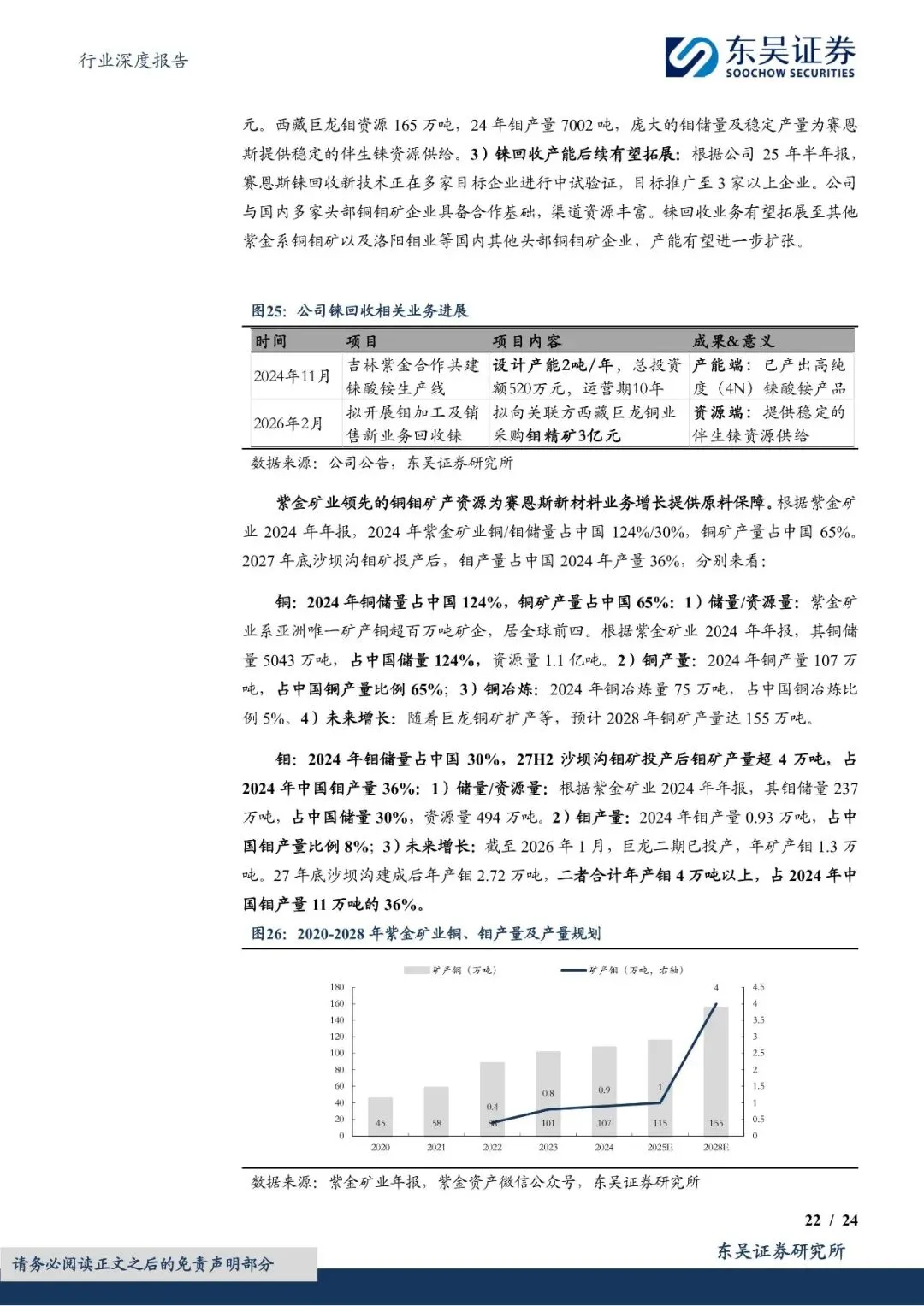 尽管中国铼资源储量有限,但通过铜钼冶炼副产品回收铼的技术逐步成熟,为铼供给提供了重要补充。然而,由于全球铼资源供给刚性且弹性有限,加之美国通过长协战略锁定主要产地资源,中国铼资源供给面临严峻挑战。因此,技术突破和资源卡位成为保障中国铼供给的关键。报告提到,赛恩斯等环保企业通过自主研发和技术创新,掌握了铼回收的核心技术,并与紫金矿业等上游矿企合作,实现了铼资源的稳定供给。未来,随着铜钼冶炼污酸提铼技术的进一步推广和应用,中国铼资源供给紧张的局面有望得到缓解。
