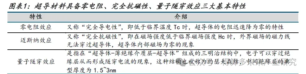 超导,全称超导电性,是指某些材料在满足临界条件时(临界温度Tc、临界磁场Hc、临界电流Ic),电阻突然变为零的现象。具备这种特性的材料被称为超导体或者超导材料。超导材料具有零电阻、完全抗磁性、量子隧穿效应三大基本特性,可以实现大电流输运、产生强磁场等先进技术,是具有战略意义的前沿新材料,在可控核聚变、超导电力、大科学装置、高端制造、医疗装备及交通运输等方面应用广泛。