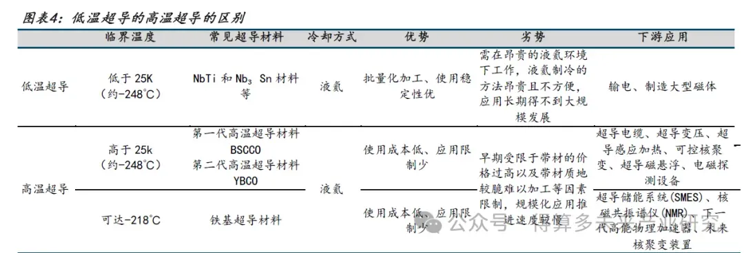 根据临界温度的不同,可以将超导材料分为低温超导材料和高温超导材料。临界温度低于-248C的超导体为低温超导体,高于-248C的为高温超导体。