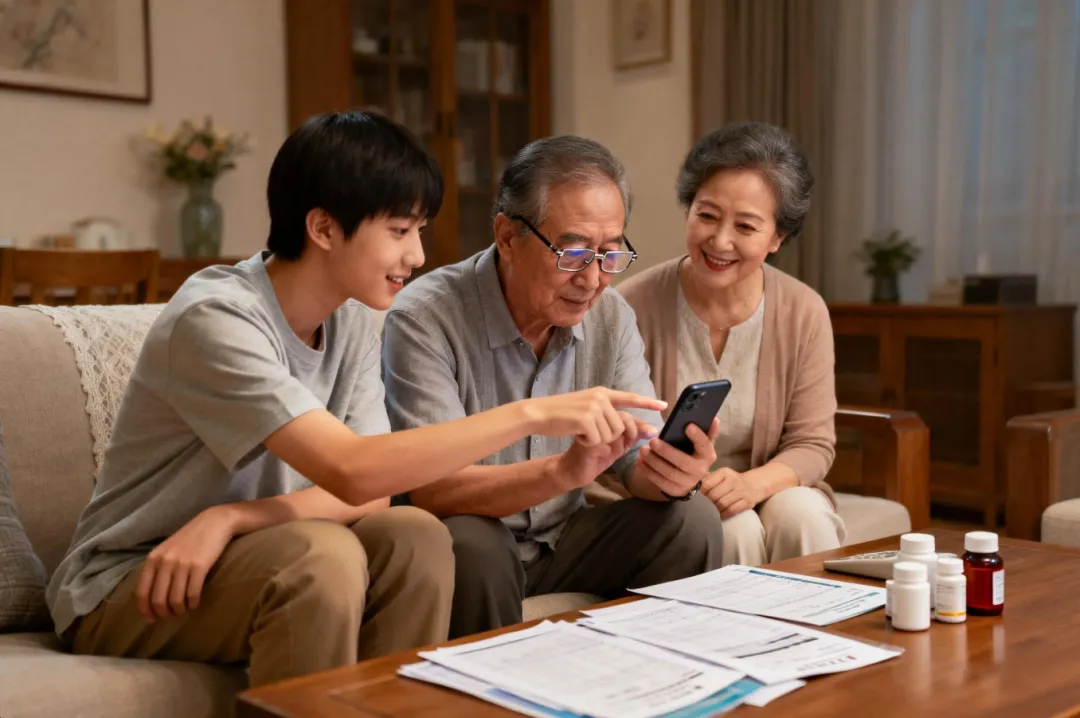 “妈,这个APP里存着您的体检单,下次去医院不用带一堆纸,手机上一翻就有了。绑个医保,以后您买药直接从我这扣,不用您掏钱。”