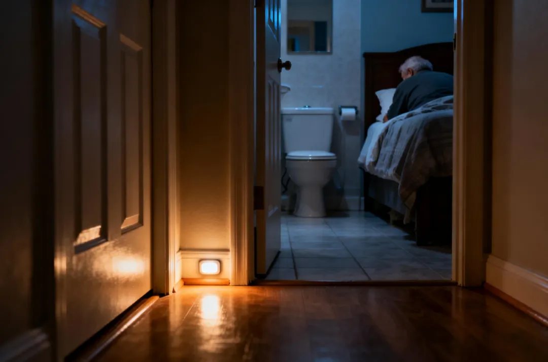 “妈,我给您装了个小夜灯,以后夜里上厕所,脚一着地它就亮,不用摸黑开灯了。”